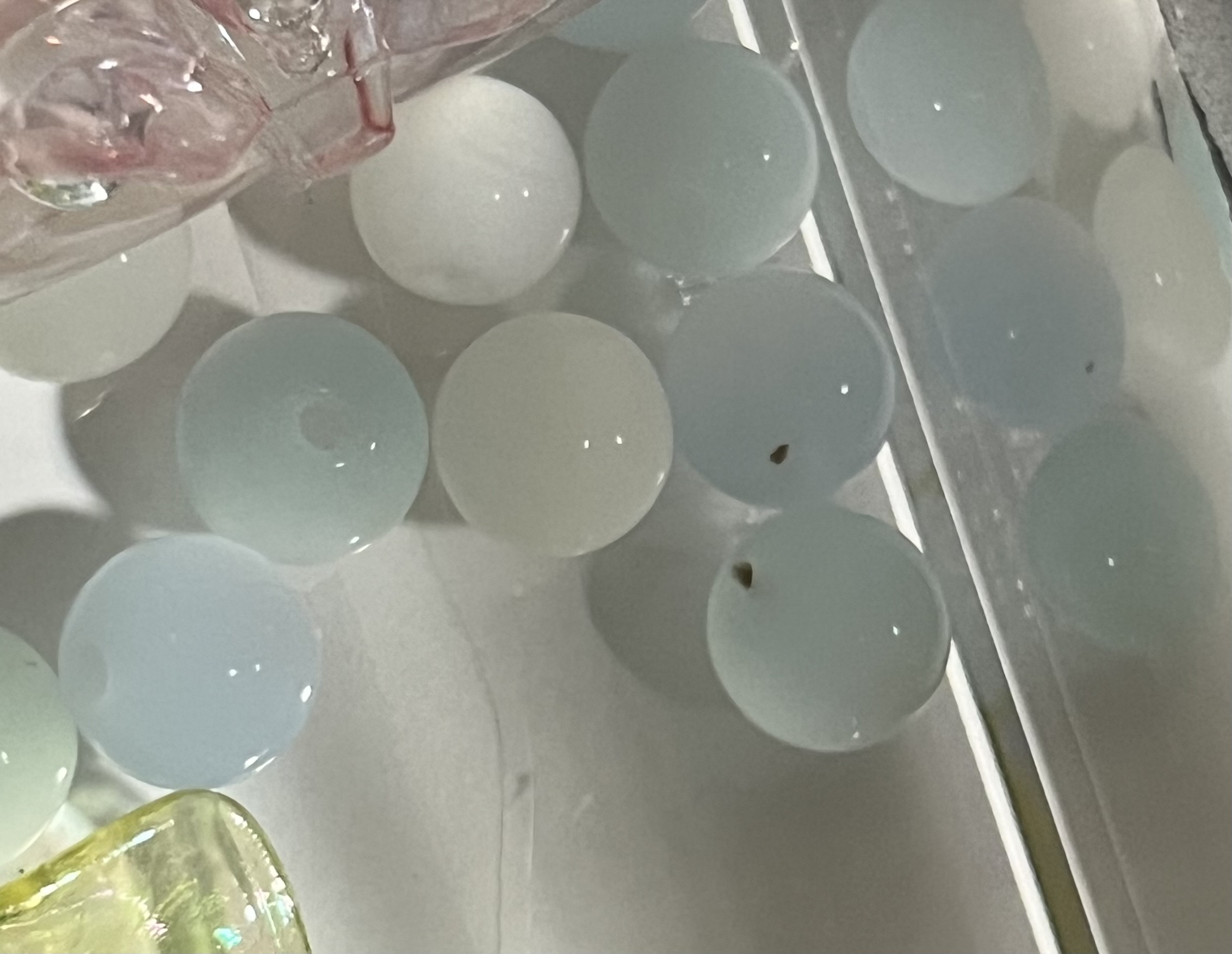 普段は1匹ずつ、ビーズの穴に入って過ごしているようです。↓